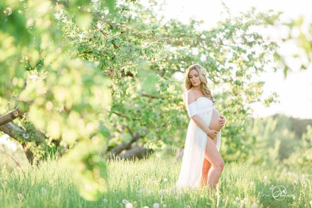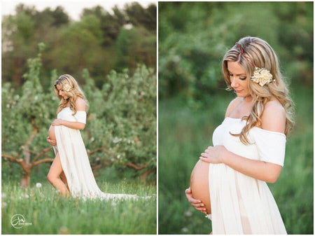 Cameron Gown • Off the Shoulder Gown • Cap Sleeve Pregnancy Dress • Sheer Chiffon Maternity Gown • by Sew Trendy