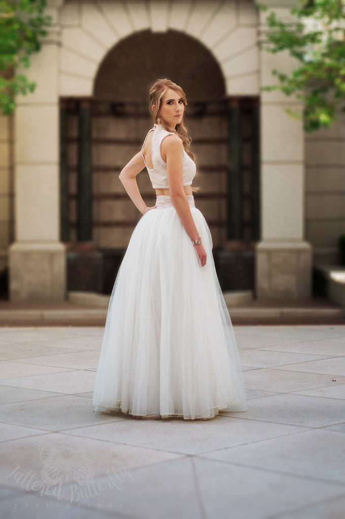 Christine Deluxe Tutu Set • Bridal Mesh Skirt and Keyhole Lace Crop • Maternity tutu • Princess Tutu • Prom Dress • Photo Prop Tutu • by Sew Trendy