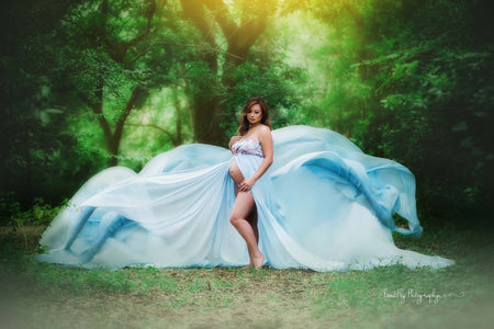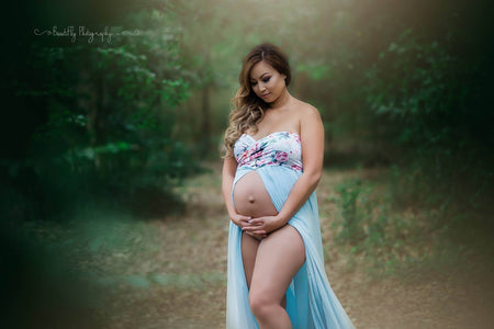 Floral Rachel Gown • Grey and Pastel Floral • Long Flowing Gown • Sheer Chiffon Maternity Gown • Sweetheart Maternity Gown • by Sew Trendy