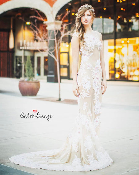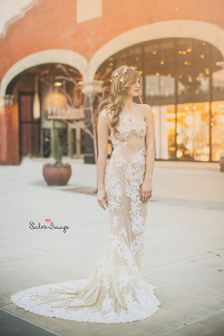 Francine Gown • Couture Sheer Nude Flower Gown • Sheer Maternity Gown • Nude Gown • Sheer Pregnancy Dress • Slim Fit Maternity Gown • Couture Gown Mesh • by Sew Trendy
