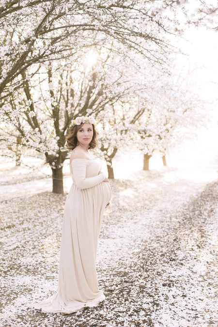 Miriam Gown • Long Sleeve Maternity Gown • Off the Shoulder Dress • Maternity Gown • Renaissance Gown • Soft Knit Maternity Gown • Bohemian • by Sew Trendy
