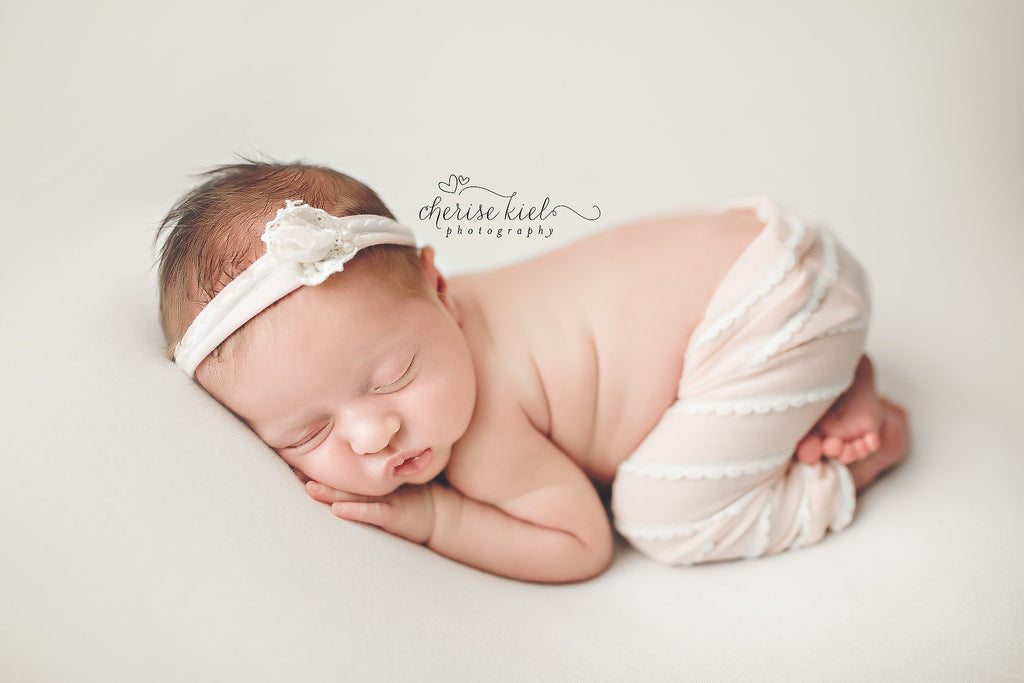 Adorable ruffle jersey pant and tie back set. Handcrafted from soft jersey with scalloped ruffles. Delicate tie back with crochet lace, pearls, and a chiffon rose ads a special touch to the set. Limited availability
