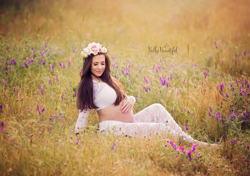 Elegant stretch knit crop with a delicate stretch lace overlay that is perfect for your maternity shoot!  Shows of that beautiful belly and pairs perfectly with any of our skirts, shorts, and other separates.  The Drew is a great studio wardrobe item for mixing and matching!
