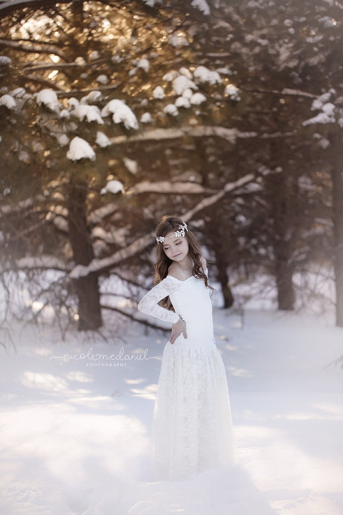 Your little girl will look just like a princess in our girls mermaid style lace Paisley gown! Hand crafted with delicate lace off the shoulder sleeves, a lace bodice, and a drop waist style mermaid skirt. Skirt is a full circle style so is perfect for twirling! Full satin lining for coverage. Multiple sleeve lengths available!