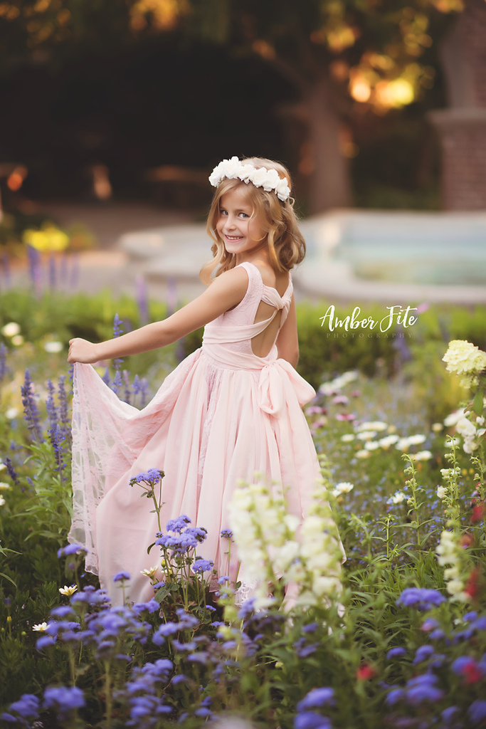 This sweet empire waist gown is the perfect addition to any studio wardrobe, wedding, or other special event. The Celia is hand crafted with tiers of delicate lace and chiffon panels in the skirt. Droop back and chiffon tie can be tied in a sweet bow at the back, or knot and bring around the waist as a sash. The full circle satin skirt underneath is made to twirl like a princess! Pair with a petticoat for added fullness.